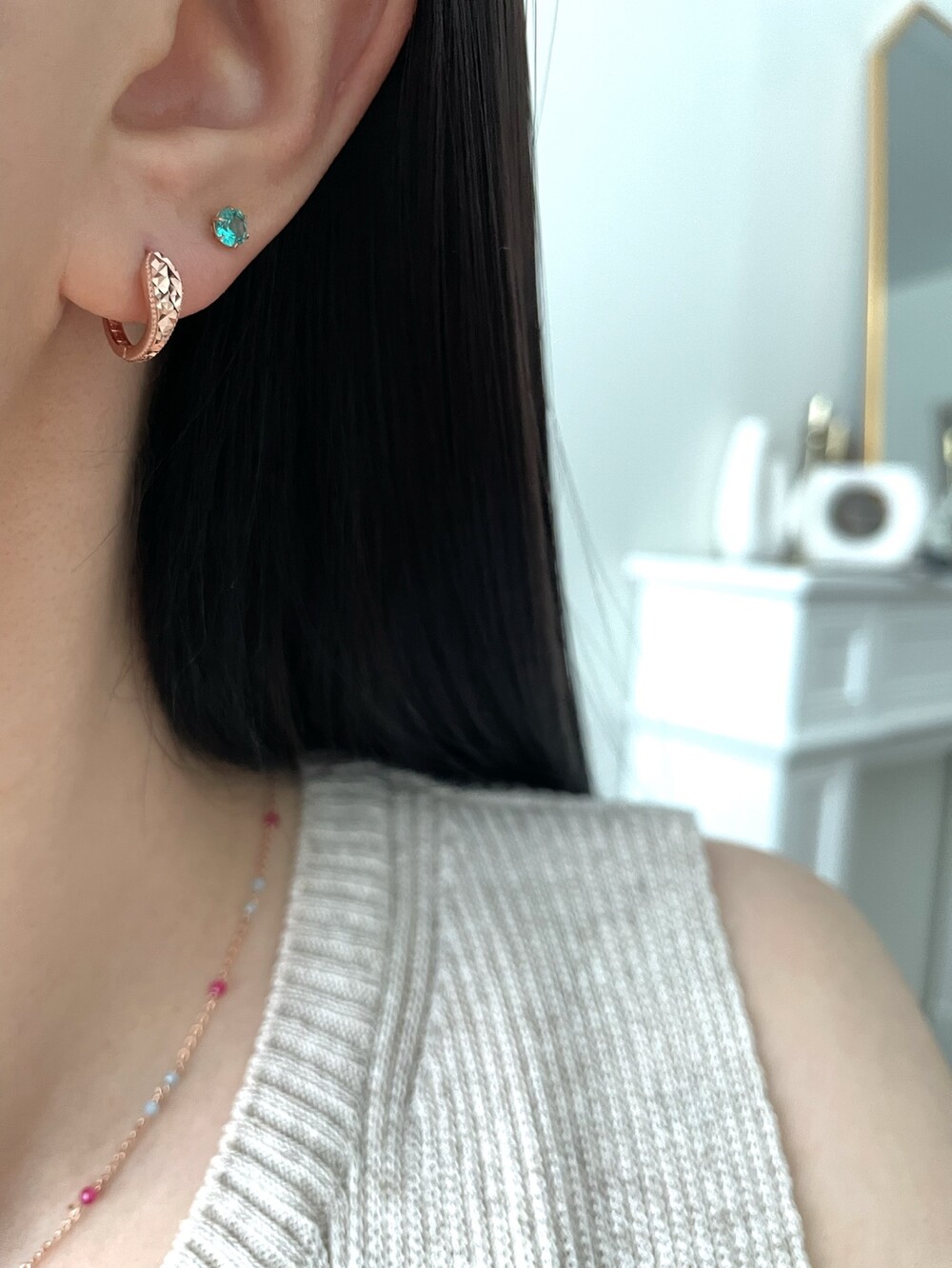 - 귀금속은 땀, 고온, 화학성분 등에 의해 변색 될 수 있으니 착용 후에는 부드러운 천으로 닦은 후 폴리 백에 따로 분리 해서 보관해 주세요.