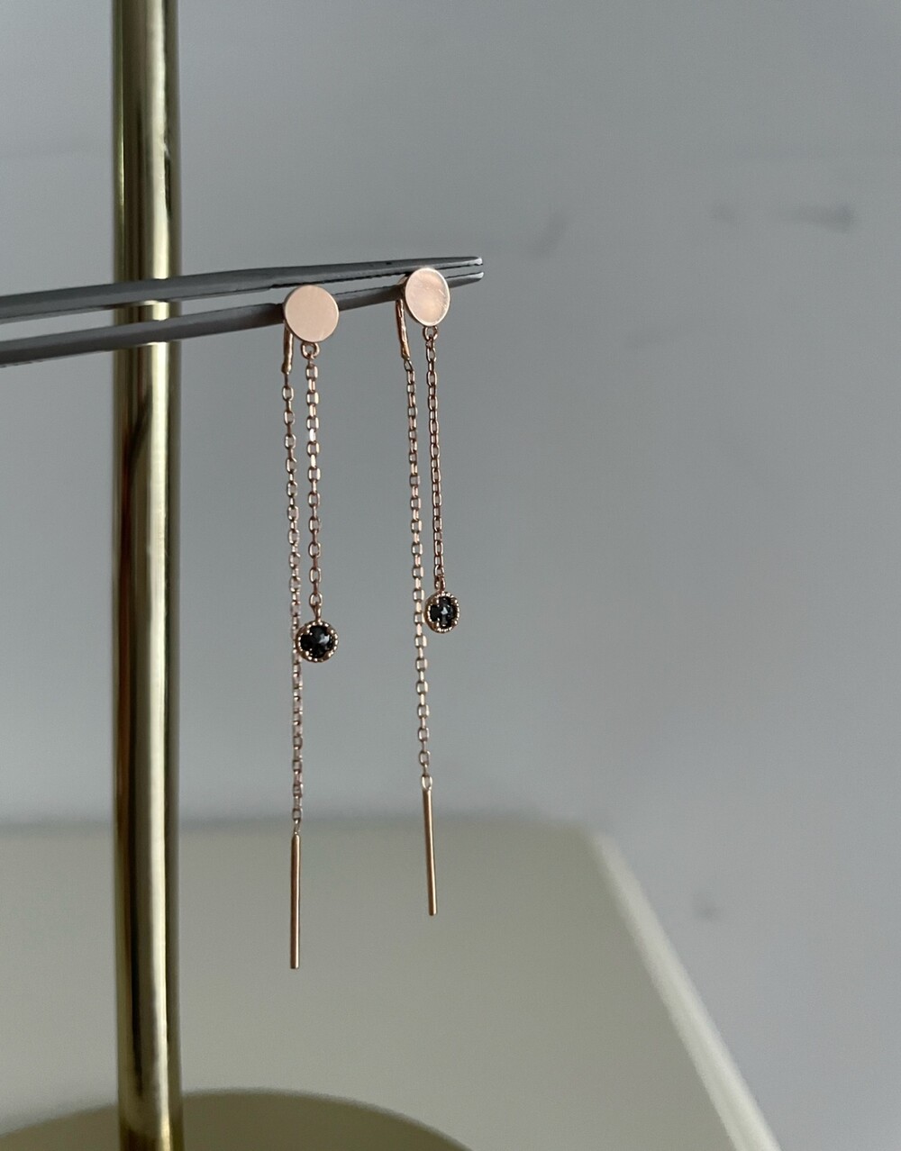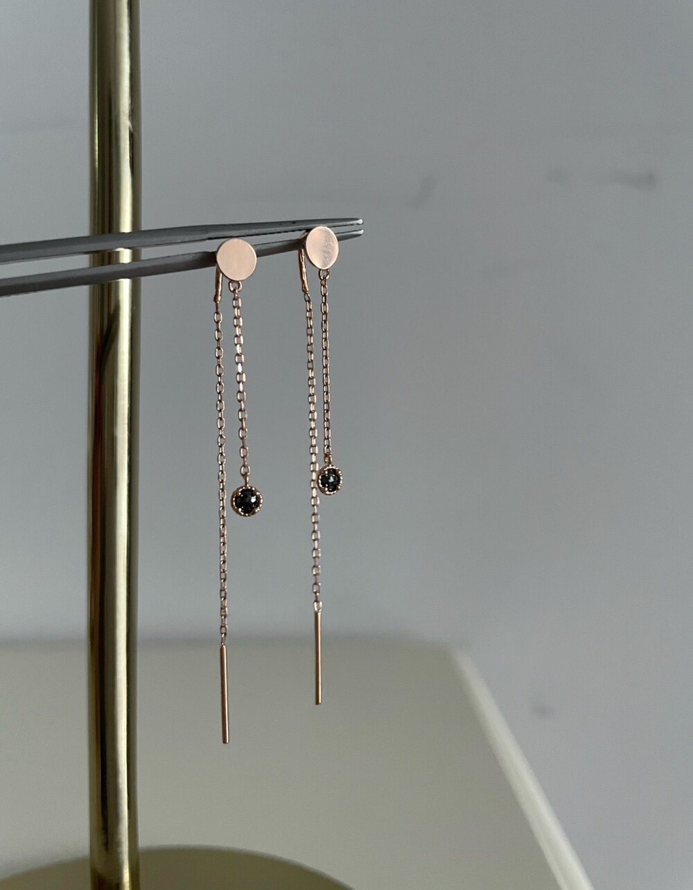 블랙 러프 다이아 귀걸이