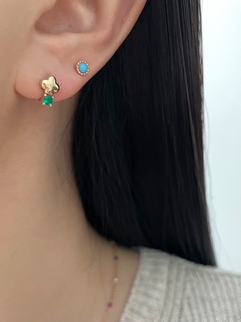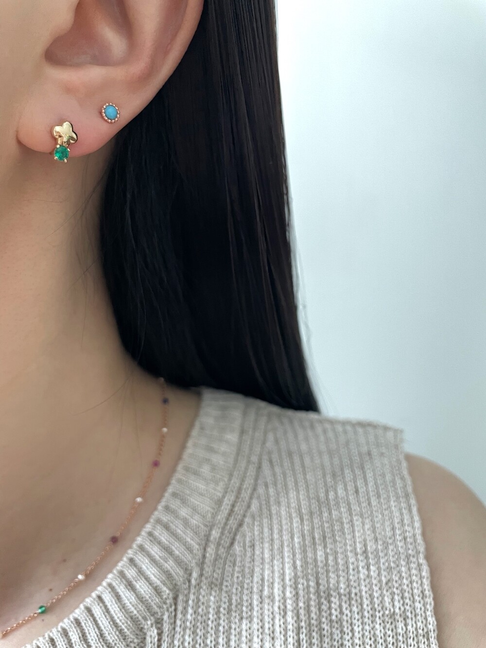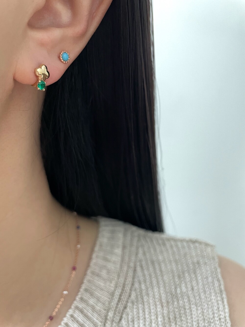 - 귀금속은 땀, 고온, 화학성분 등에 의해 변색 될 수 있으니 착용 후에는 부드러운 천으로 닦은 후 폴리 백에 따로 분리 해서 보관해 주세요.