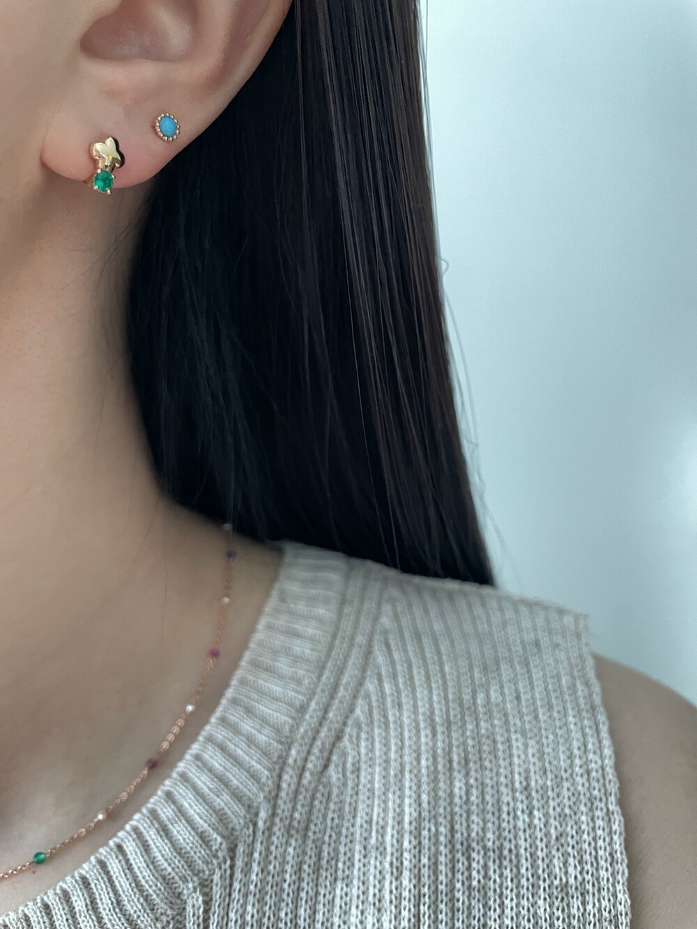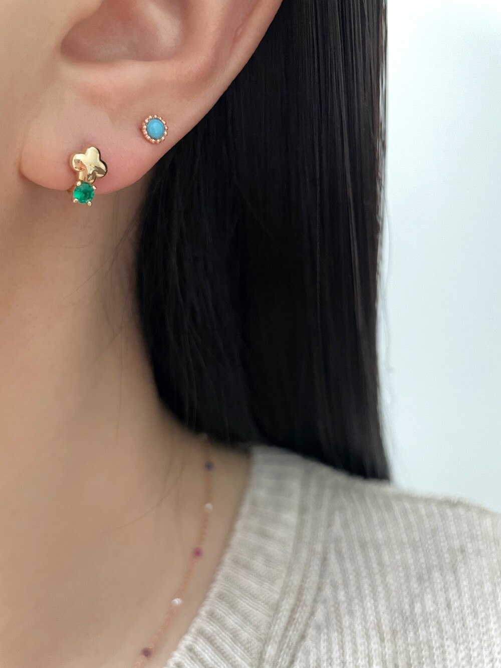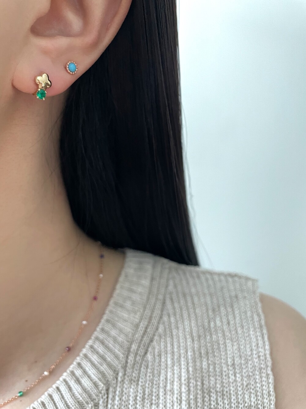 - 귀금속은 땀, 고온, 화학성분 등에 의해 변색 될 수 있으니 착용 후에는 부드러운 천으로 닦은 후 폴리 백에 따로 분리 해서 보관해 주세요.