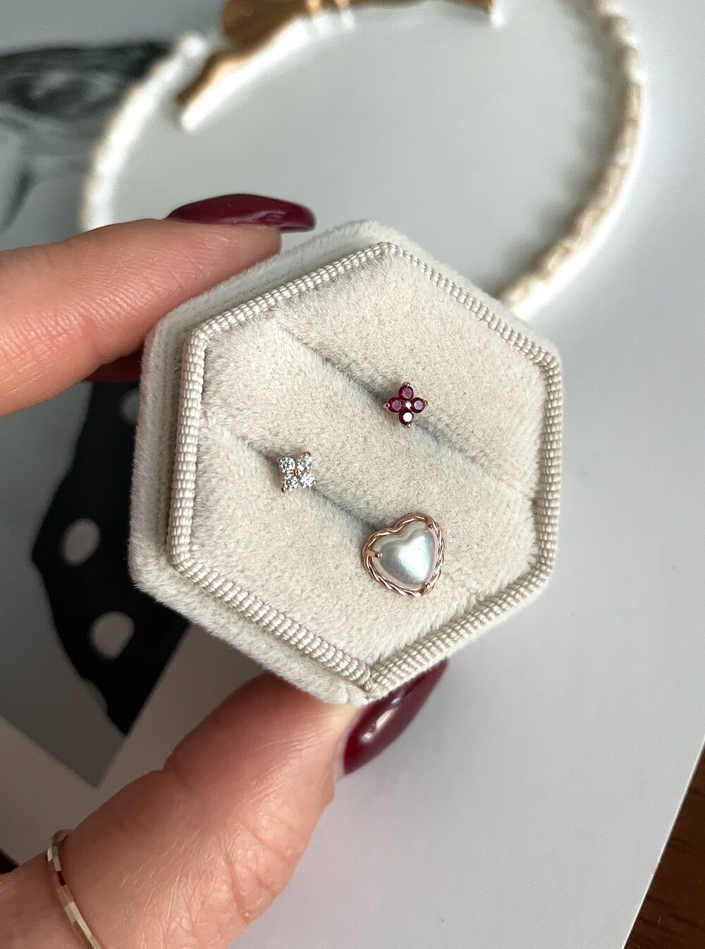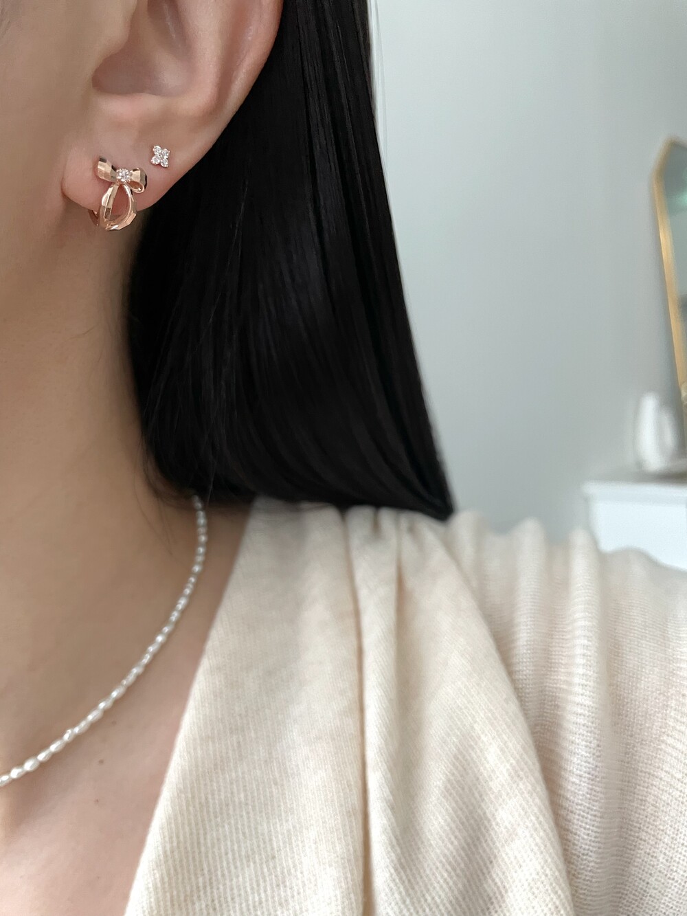 - 귀금속은 땀, 고온, 화학성분 등에 의해 변색 될 수 있으니 착용 후에는 부드러운 천으로 닦은 후 폴리 백에 따로 분리 해서 보관해 주세요.