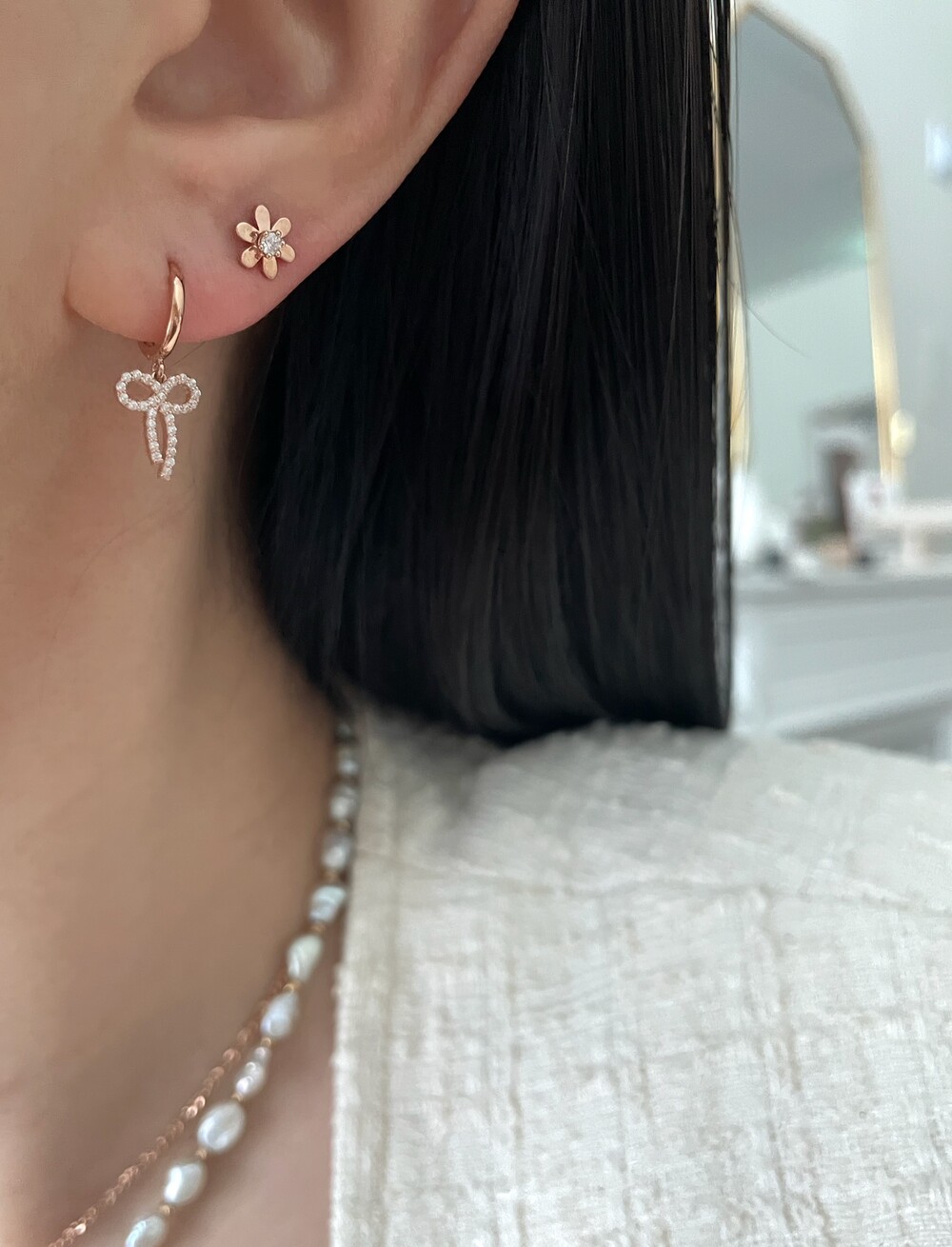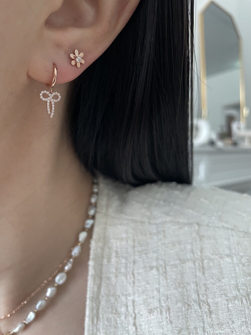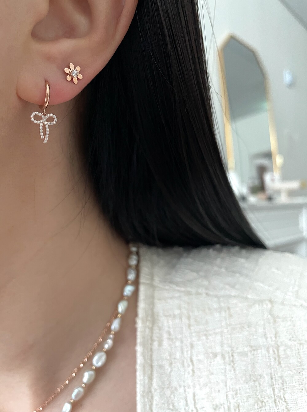 - 귀금속은 땀, 고온, 화학성분 등에 의해 변색 될 수 있으니 착용 후에는 부드러운 천으로 닦은 후 폴리 백에 따로 분리 해서 보관해 주세요.