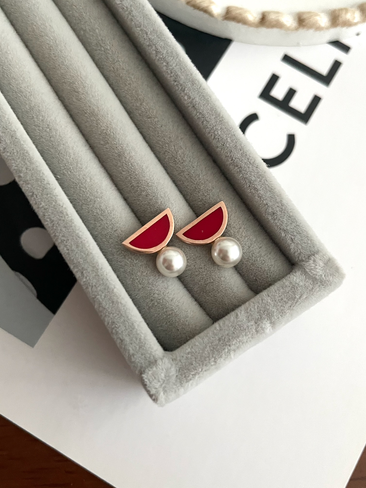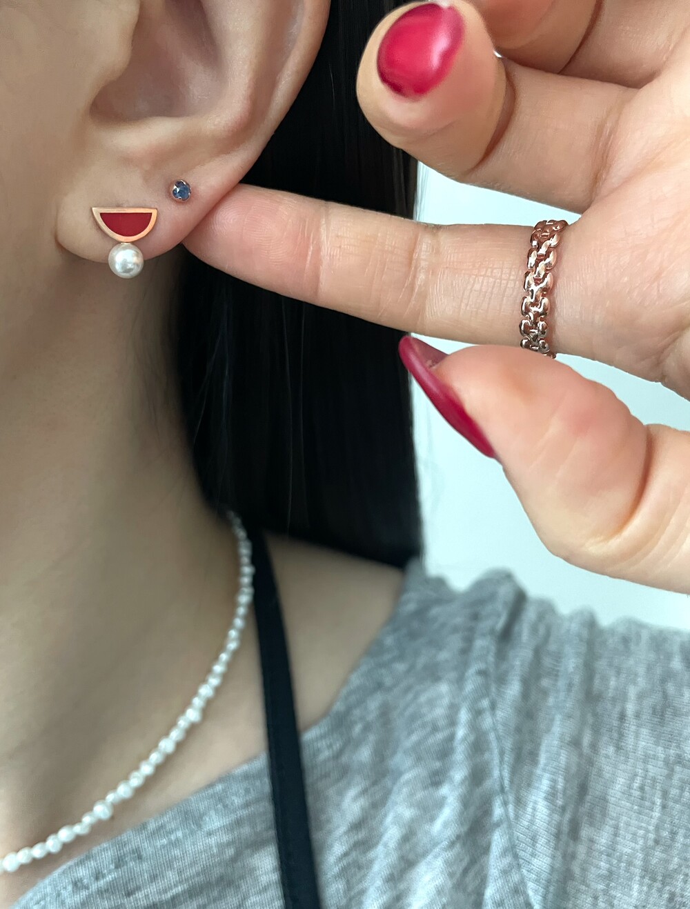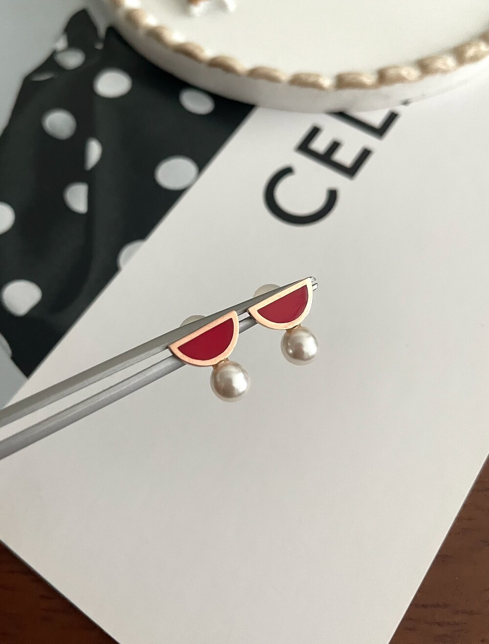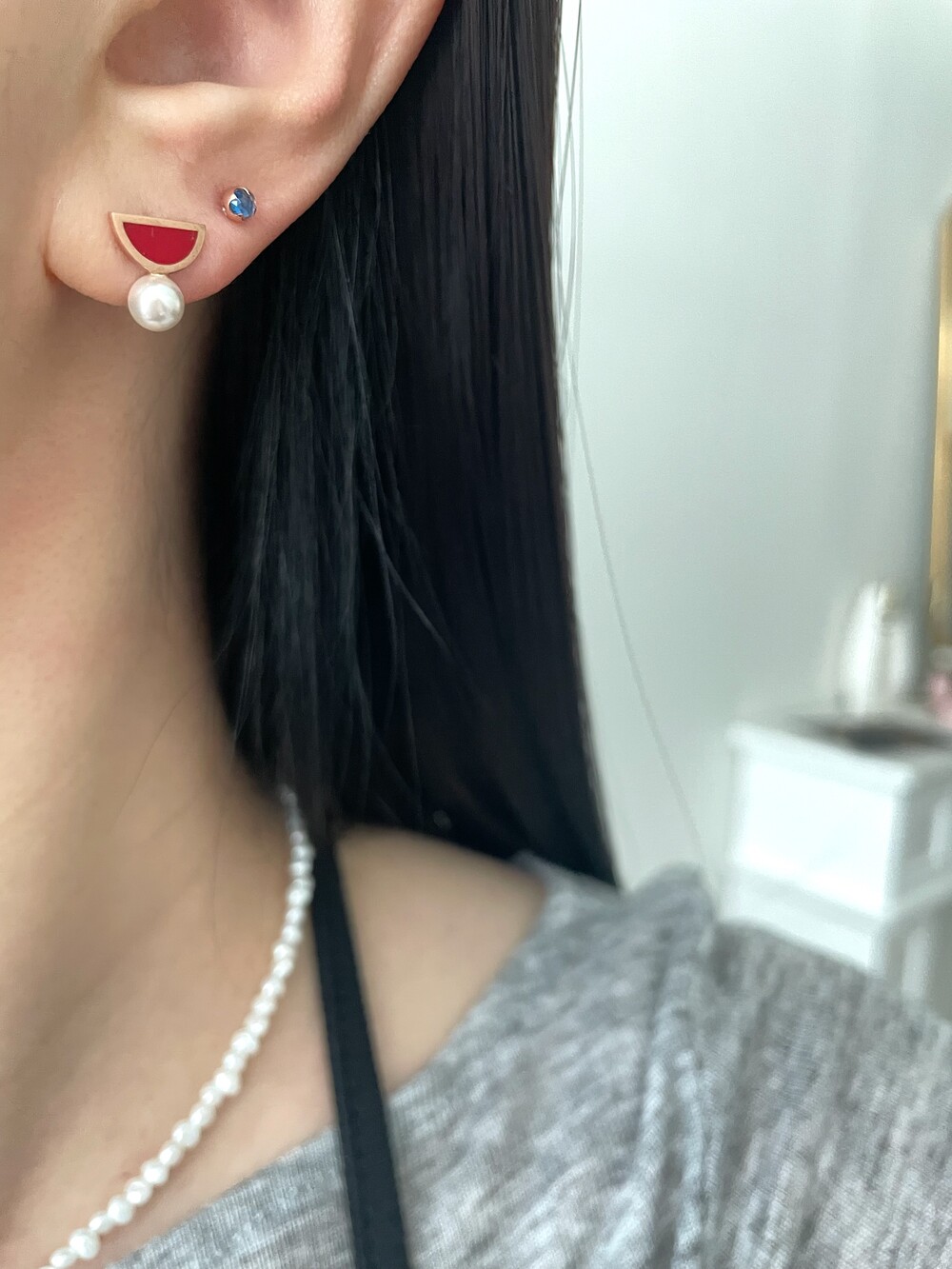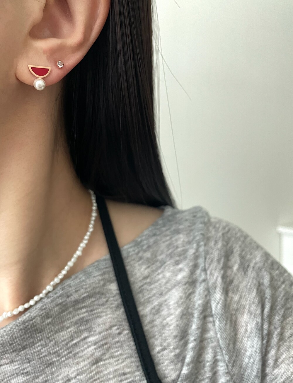 레드 앤 펄 귀걸이