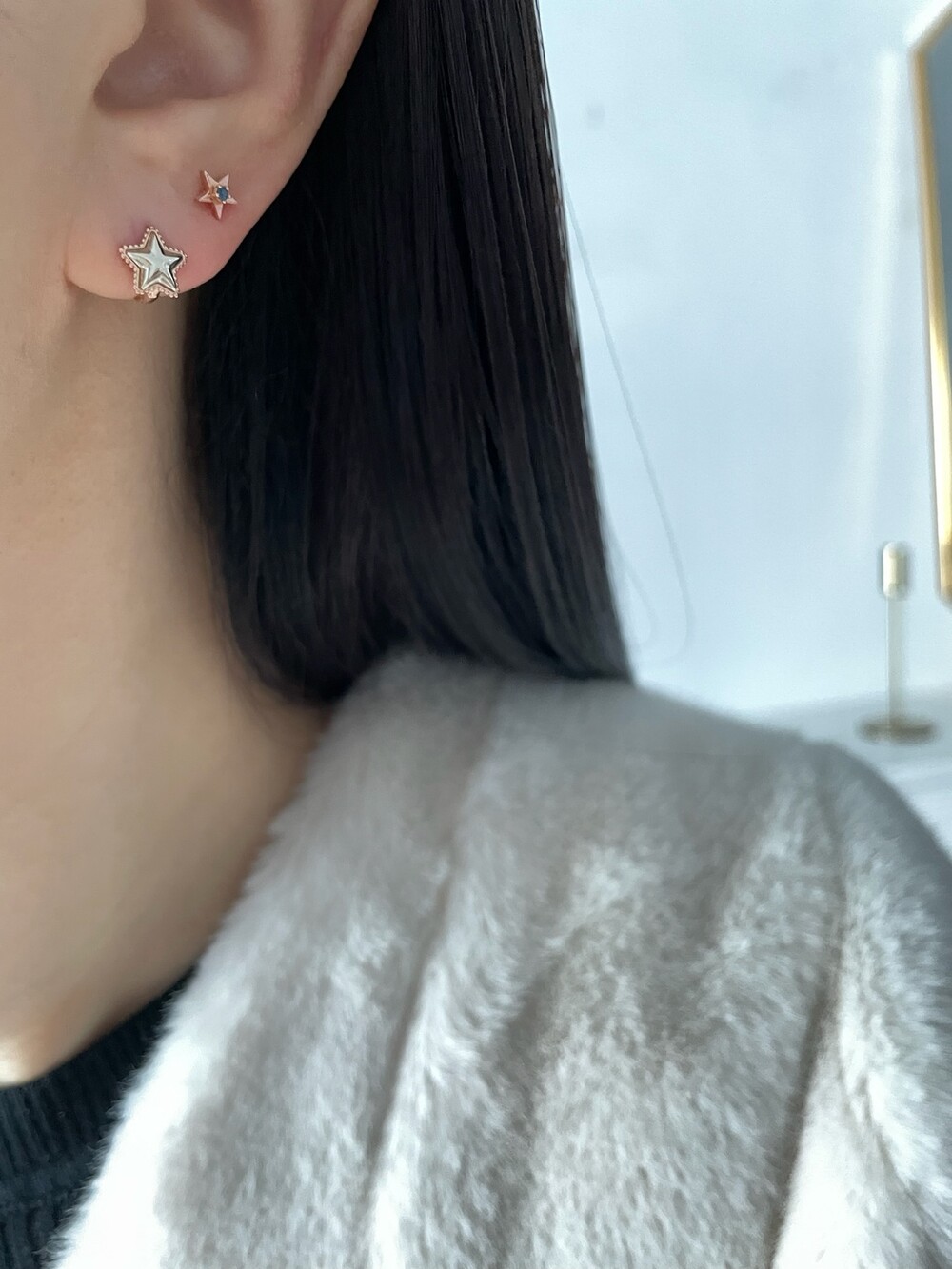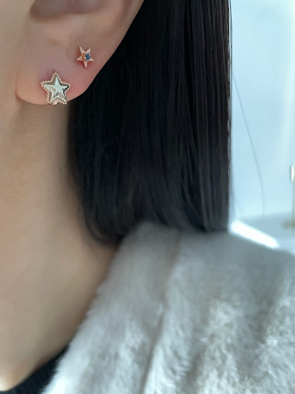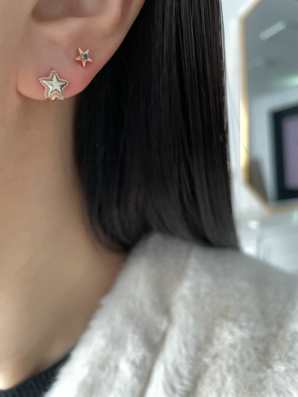 투톤 별 귀걸이