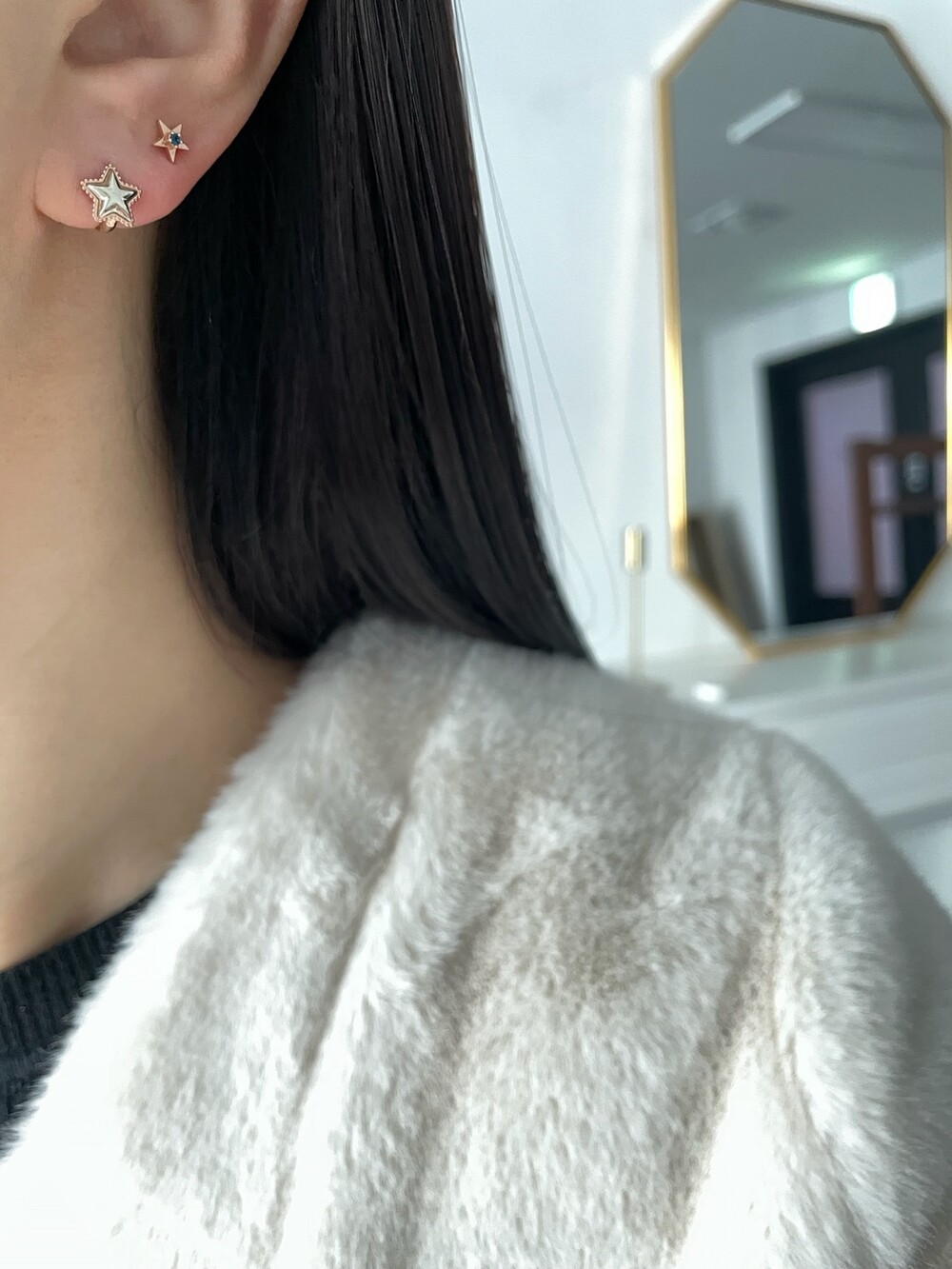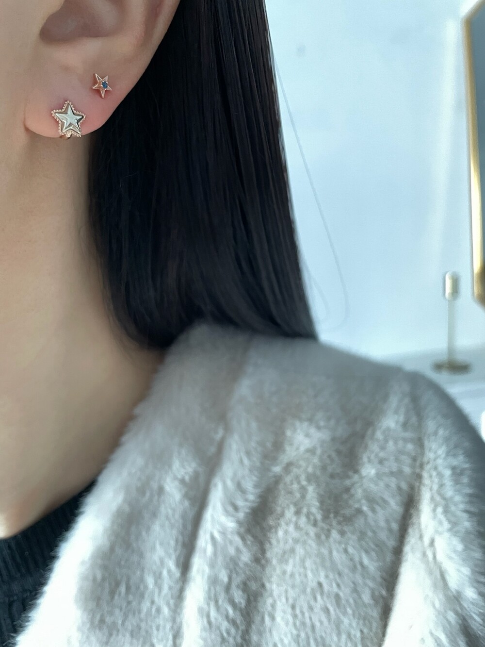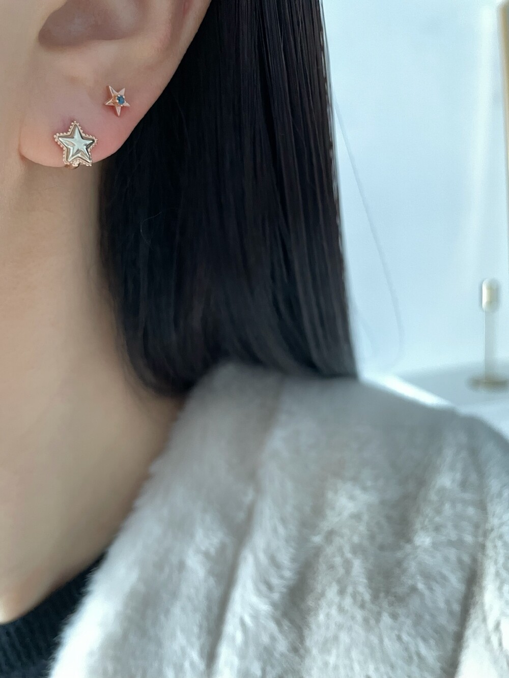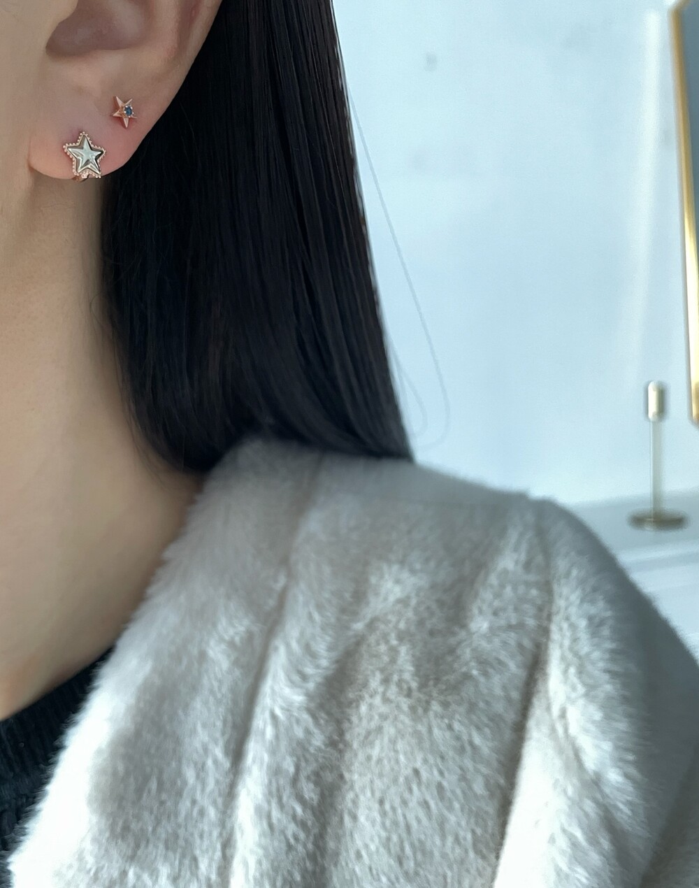투톤 별 귀걸이