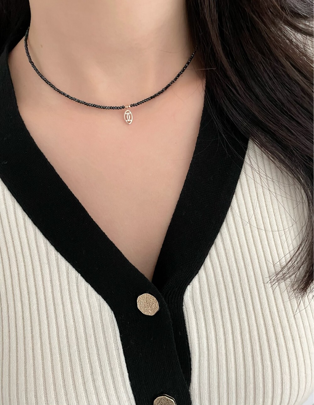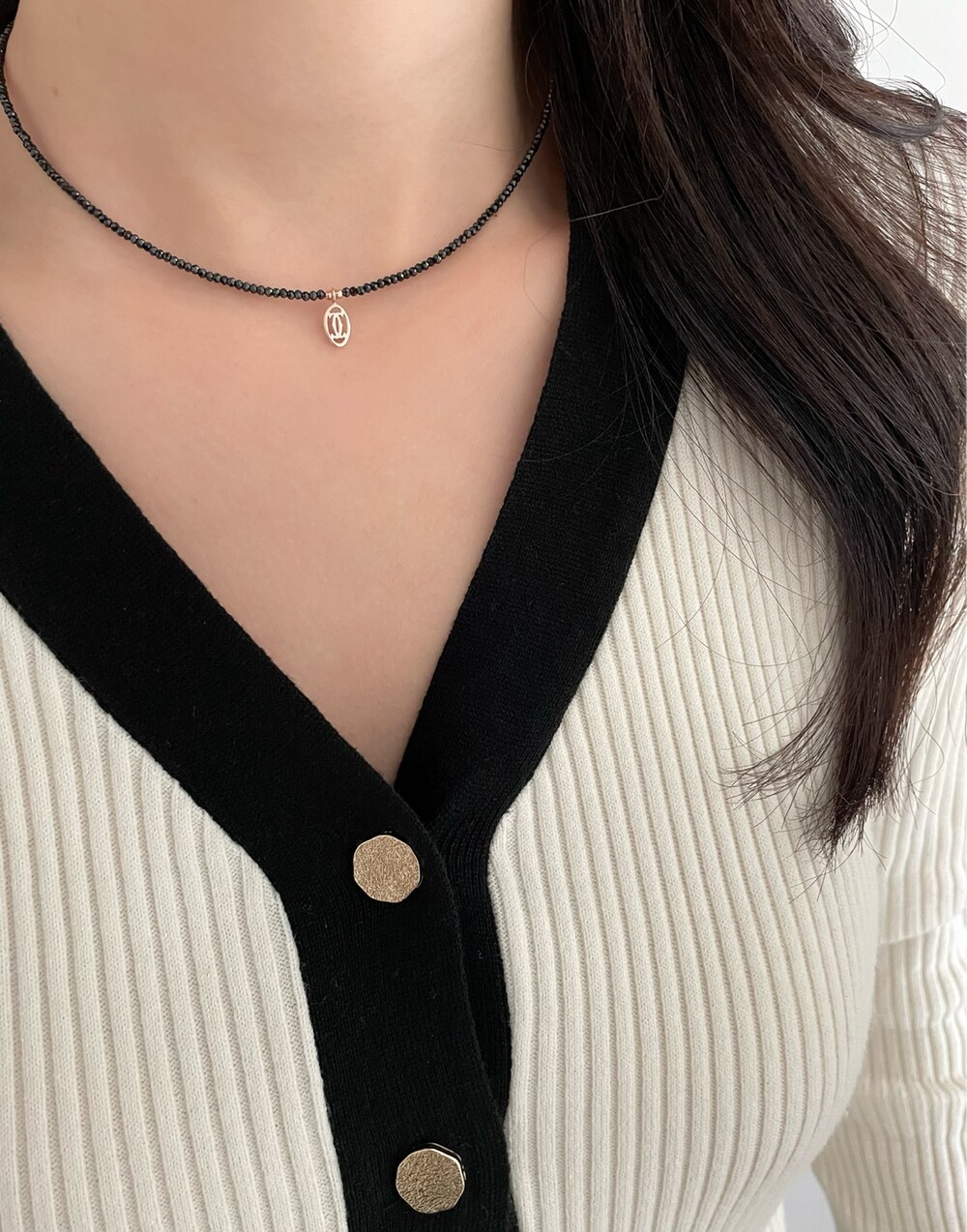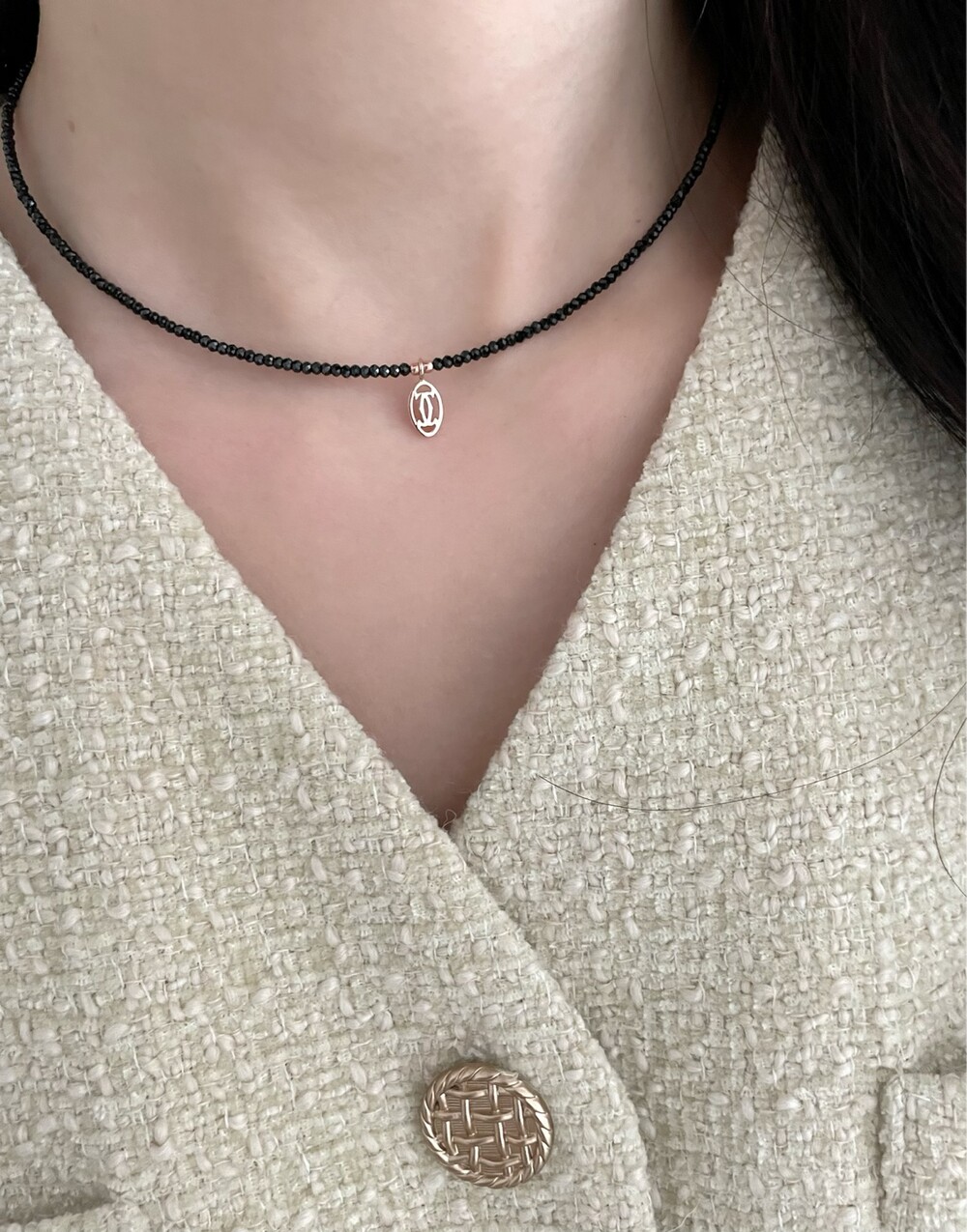 띠에 블랙 스피넬 목걸이