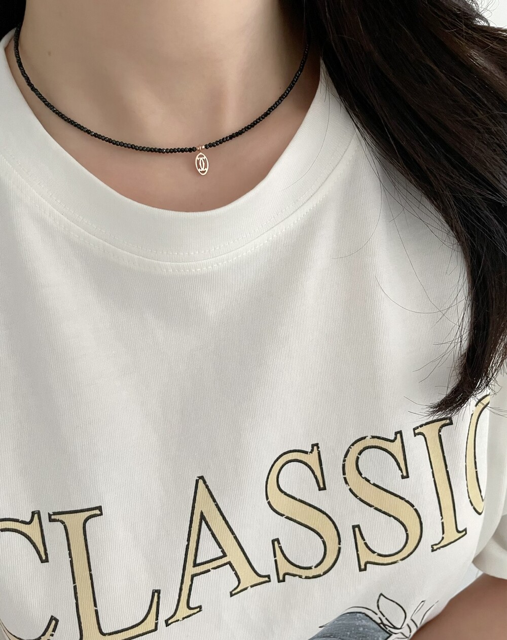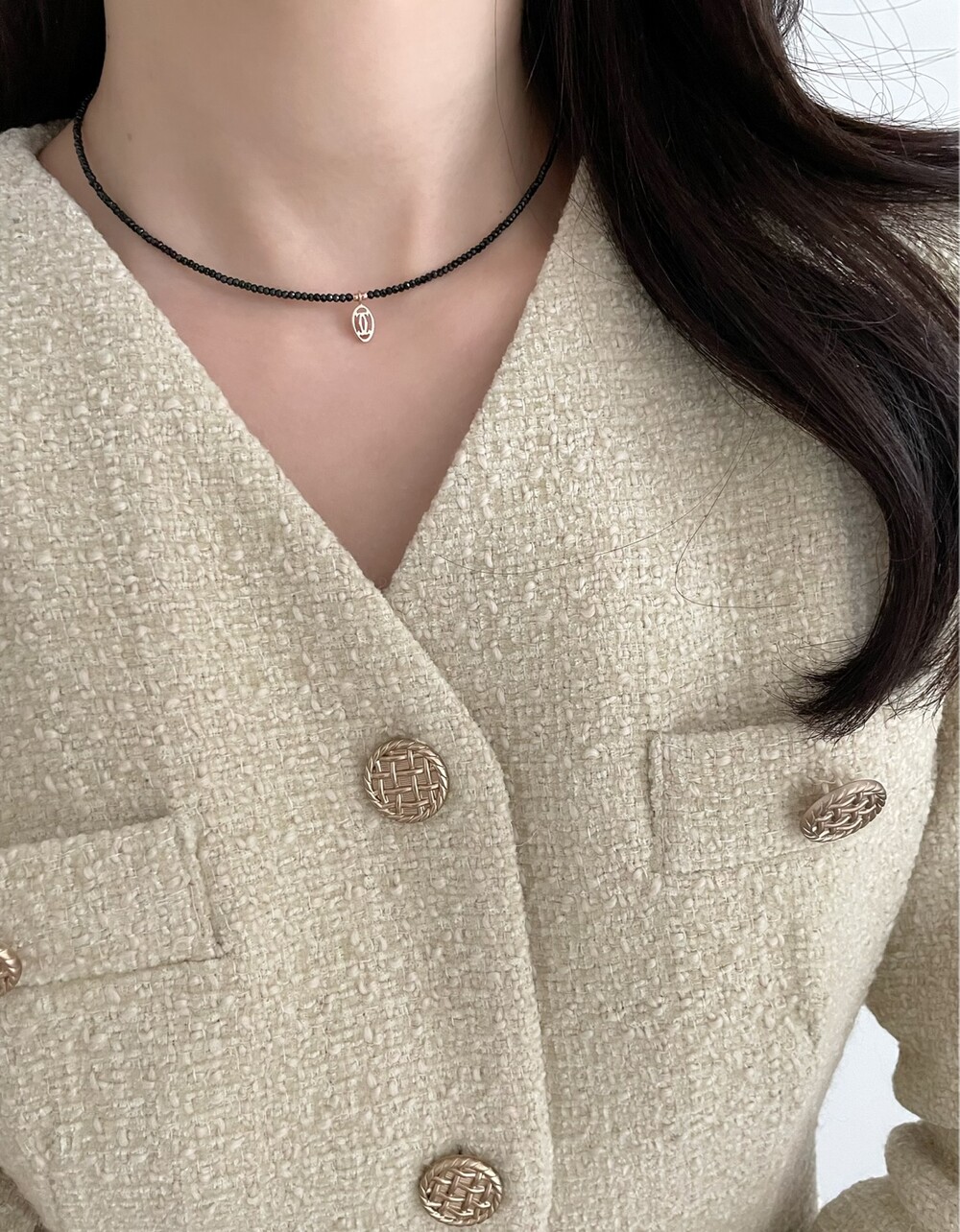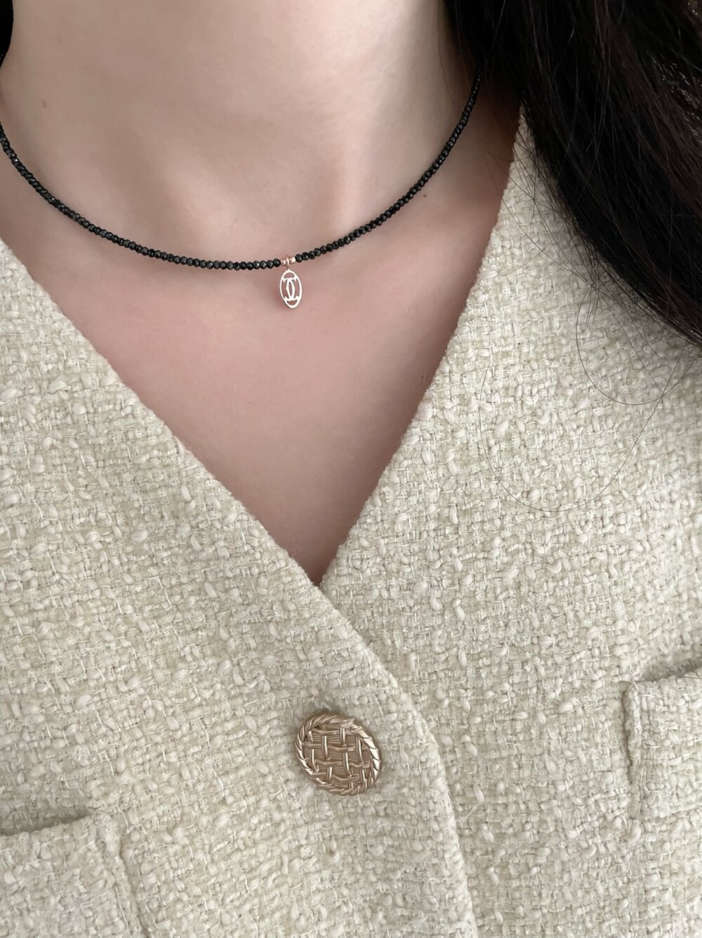 띠에 블랙 스피넬 목걸이