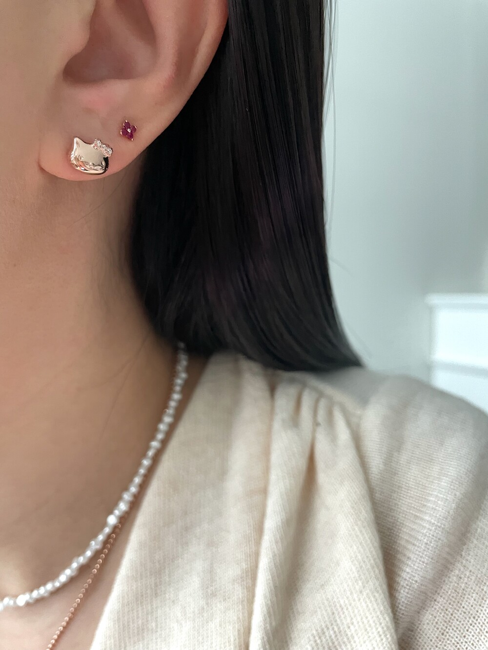 - 귀금속은 땀, 고온, 화학성분 등에 의해 변색 될 수 있으니 착용 후에는 부드러운 천으로 닦은 후 폴리 백에 따로 분리 해서 보관해 주세요.