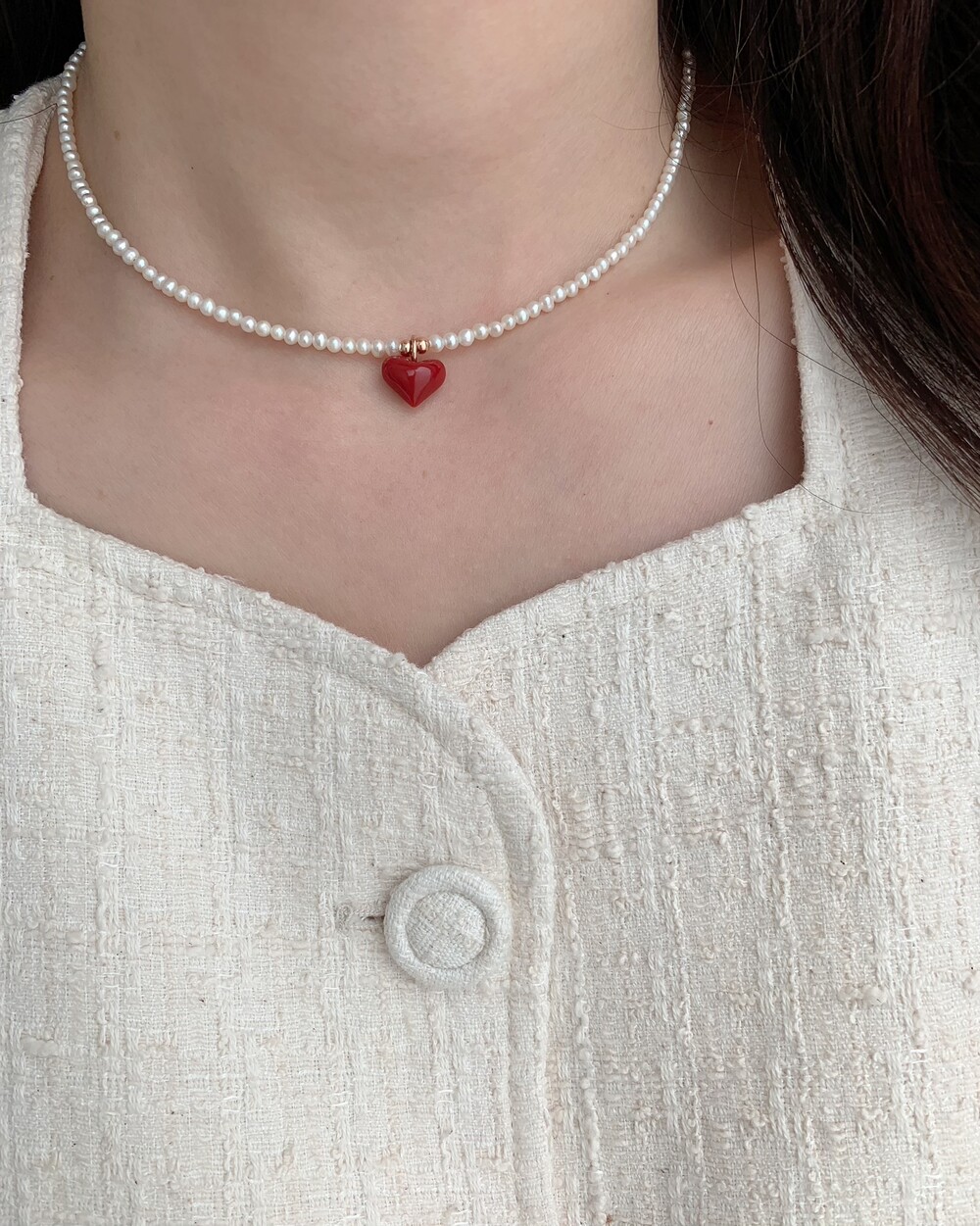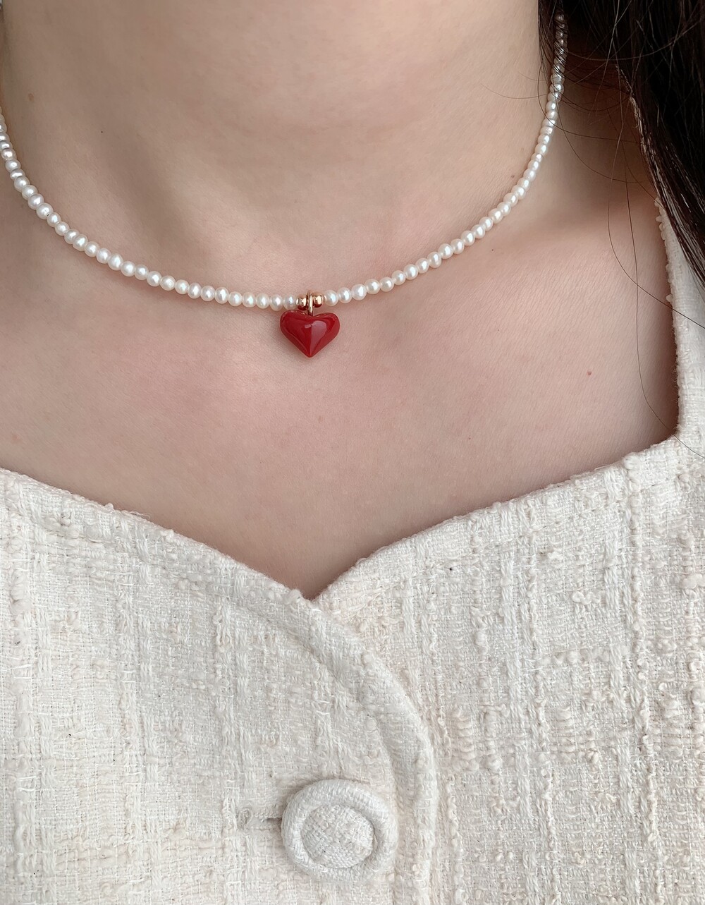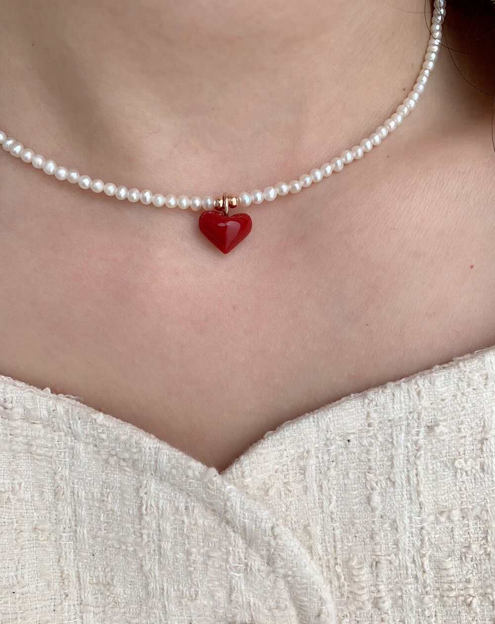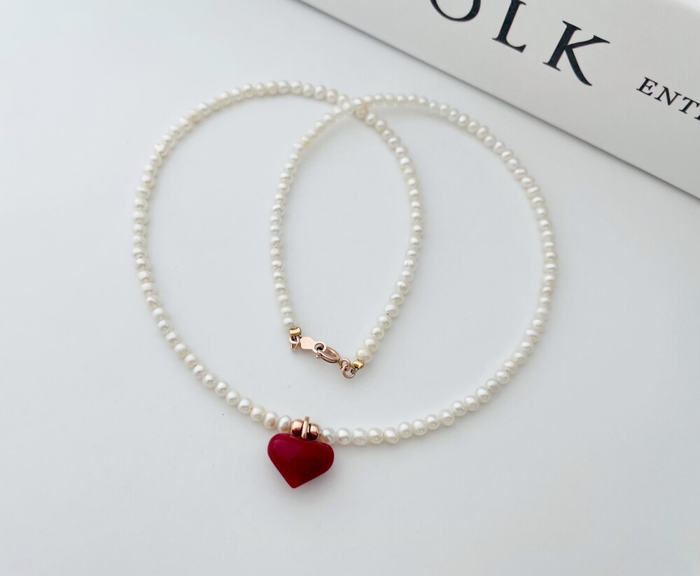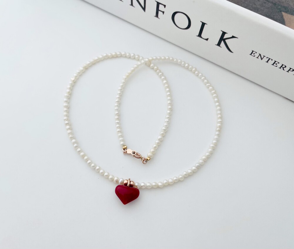펄 앤 레드 하트 목걸이