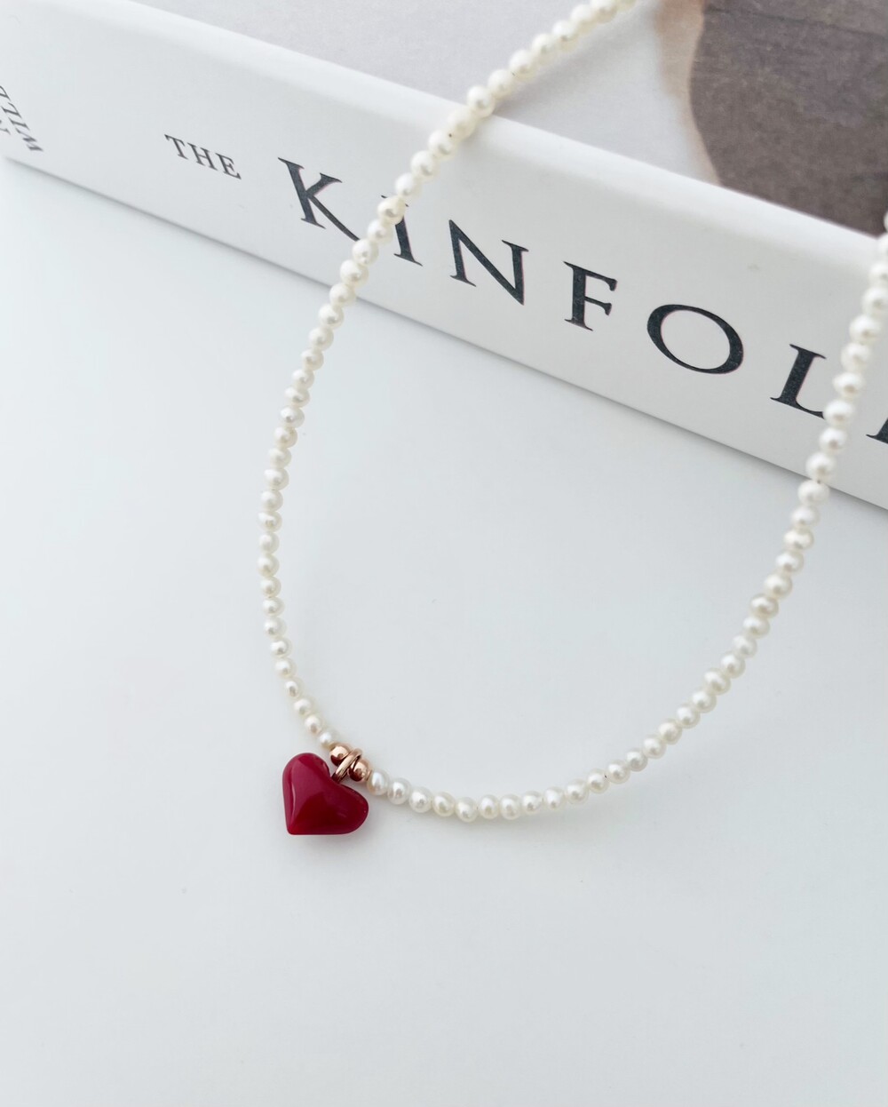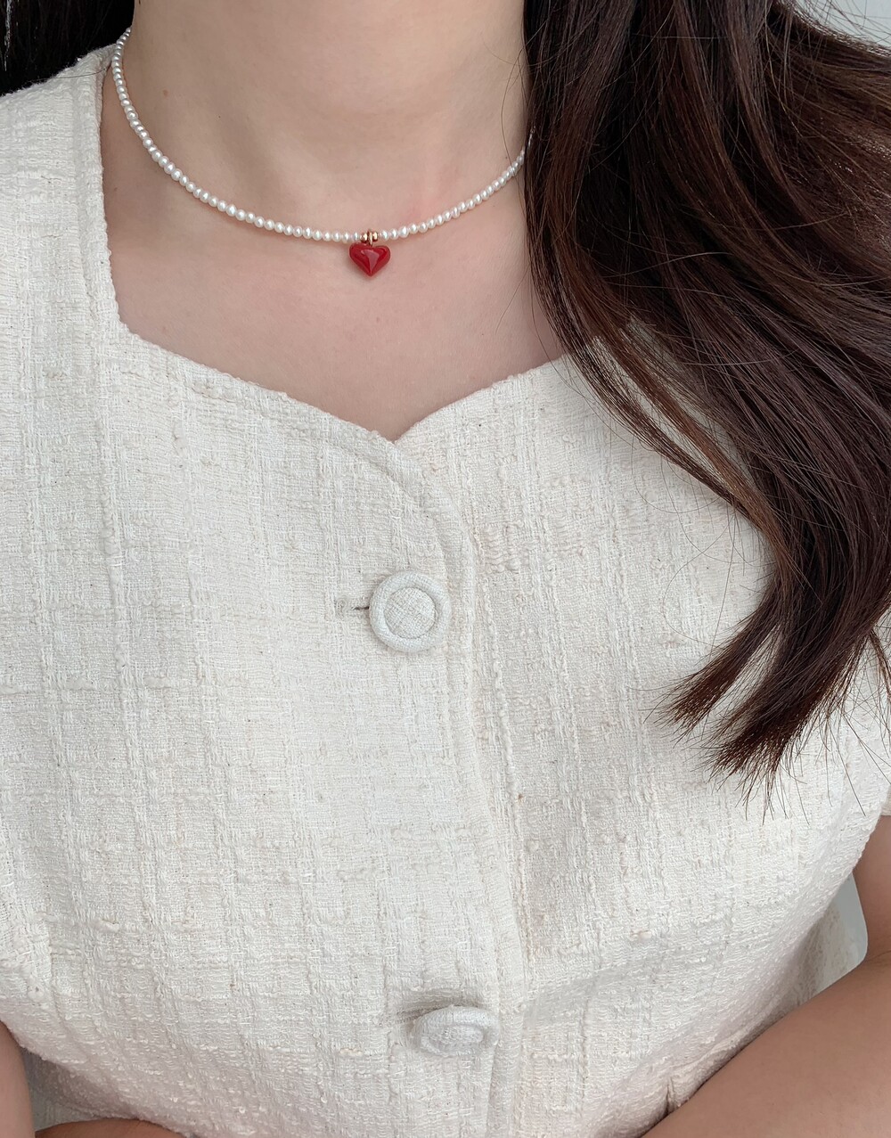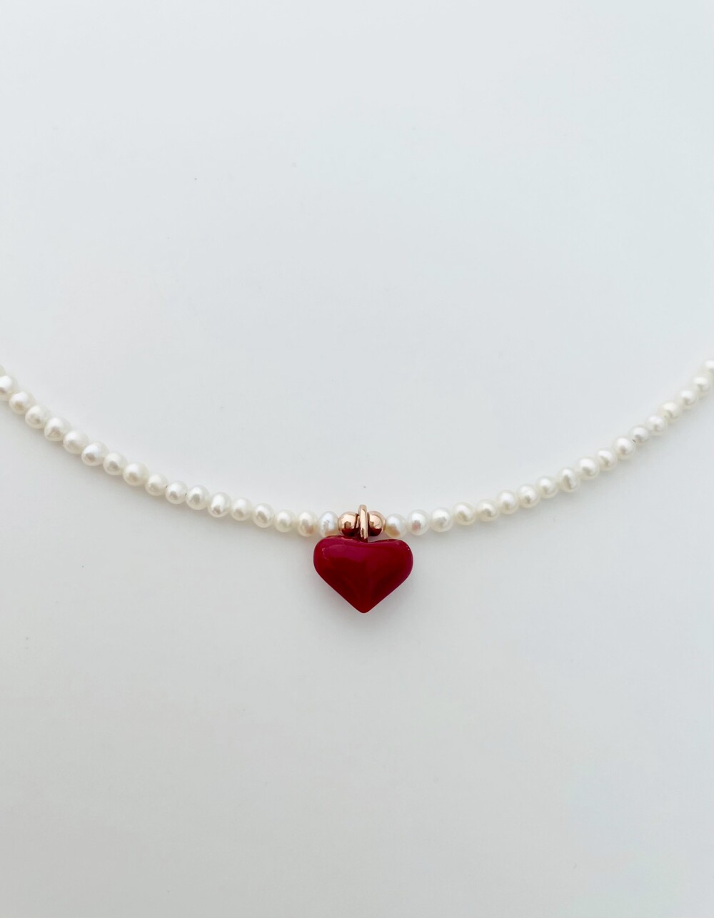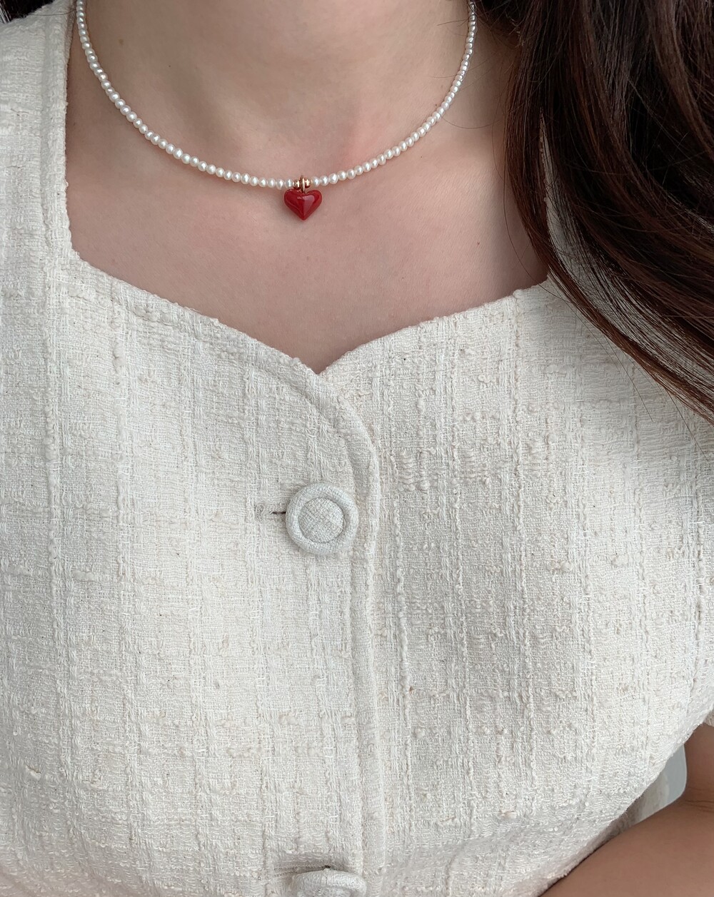 펄 앤 레드 하트 목걸이