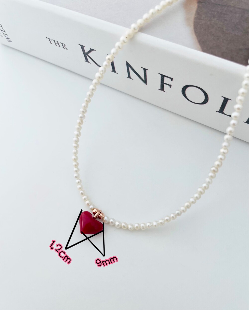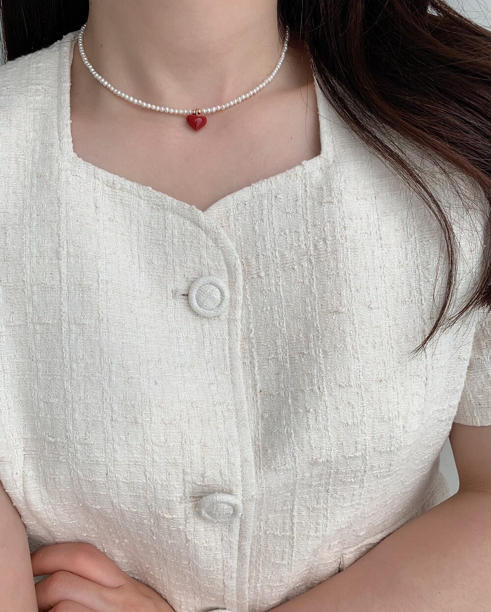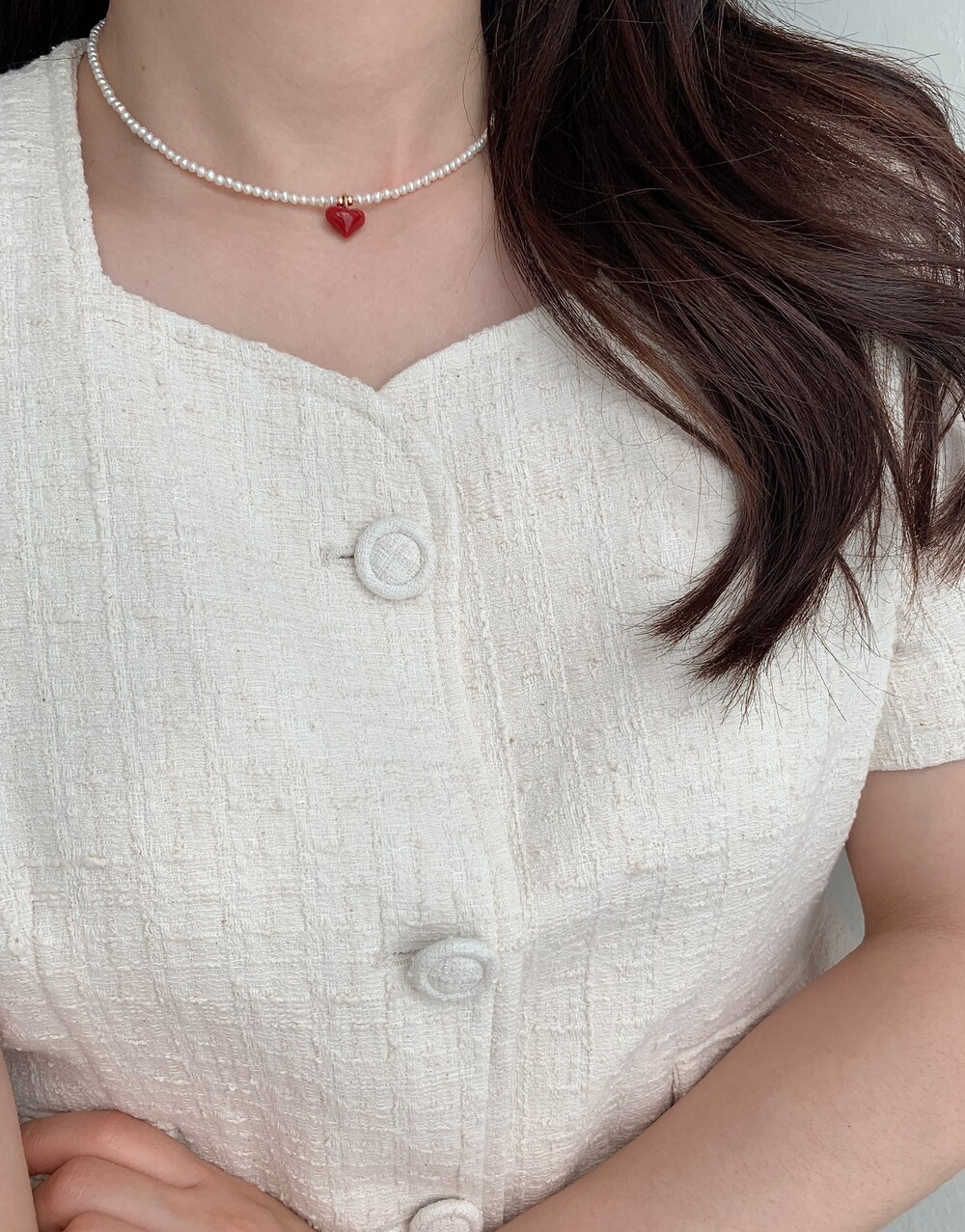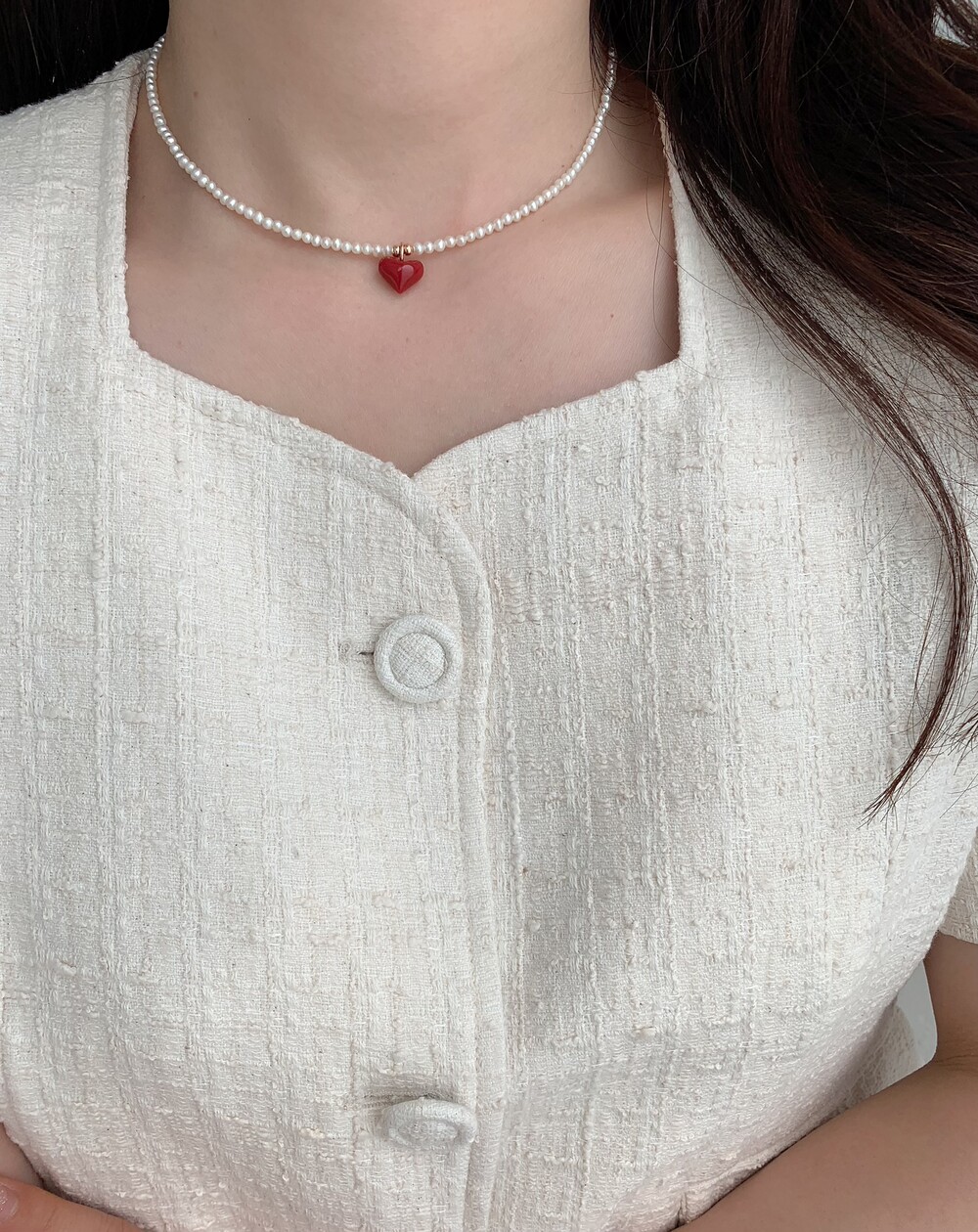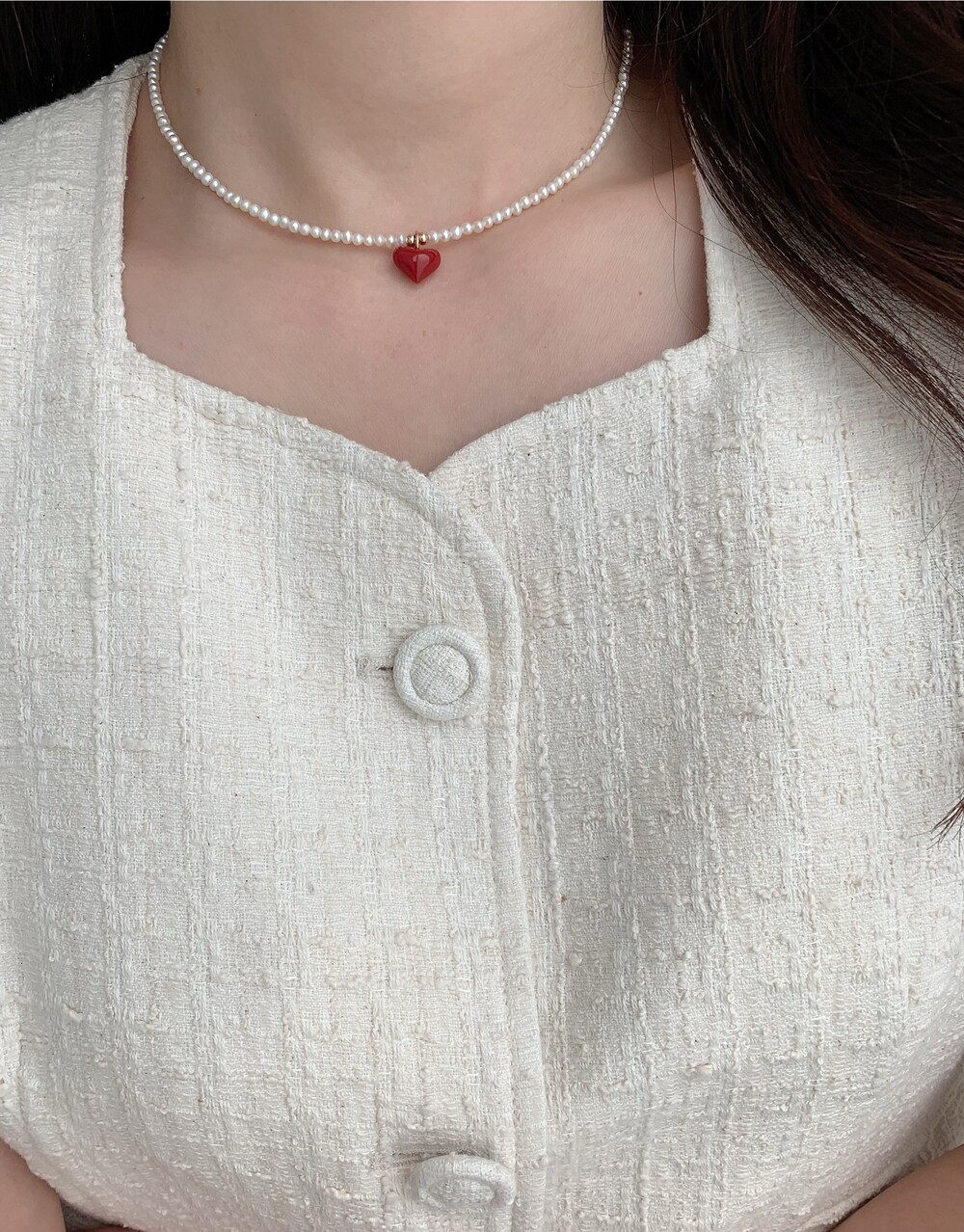 펄 앤 레드 하트 목걸이