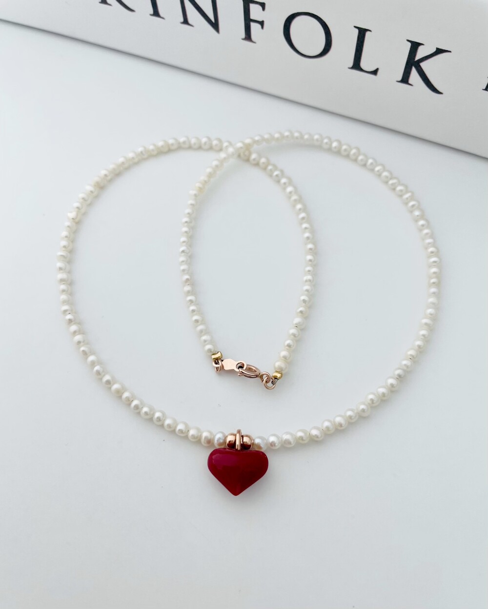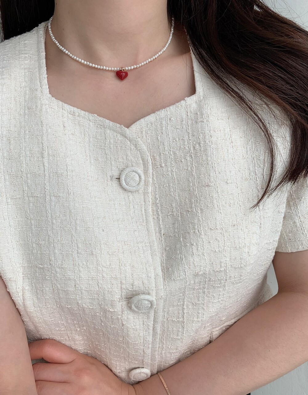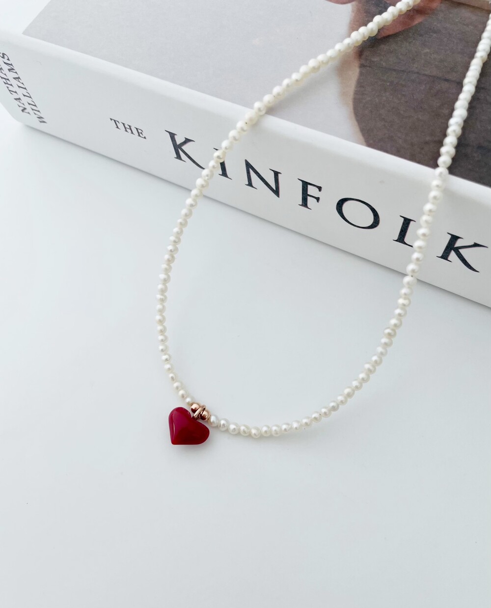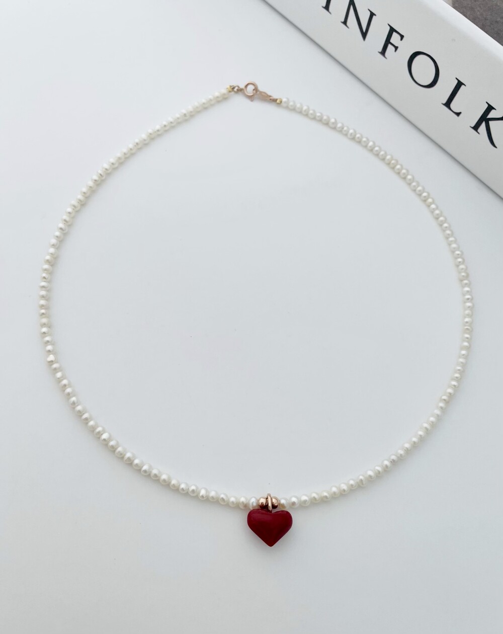 펄 앤 레드 하트 목걸이