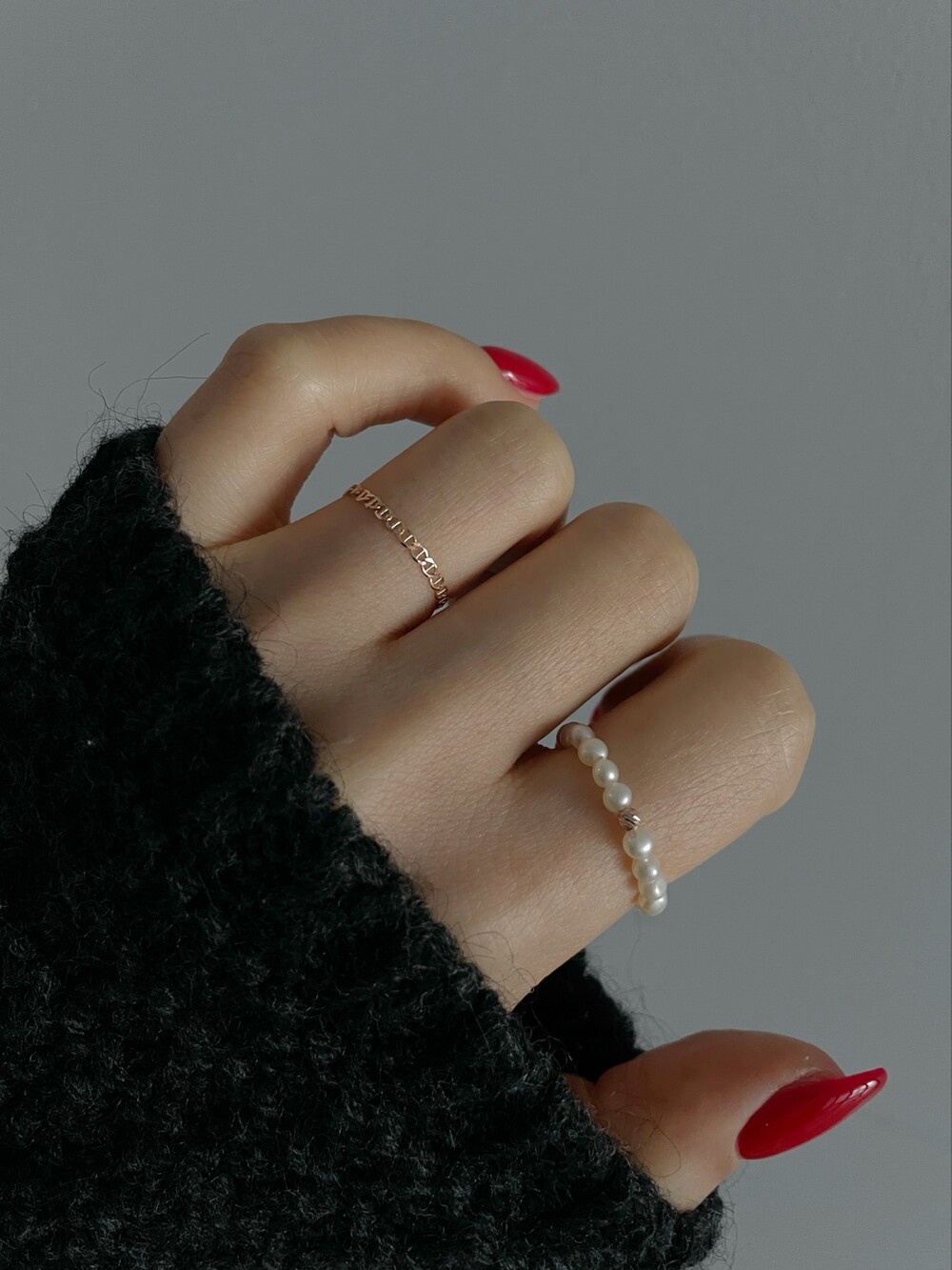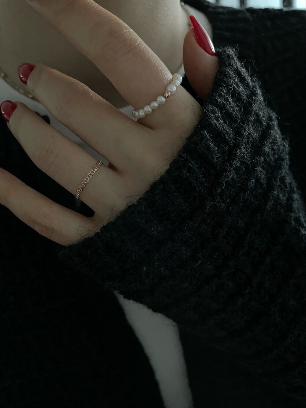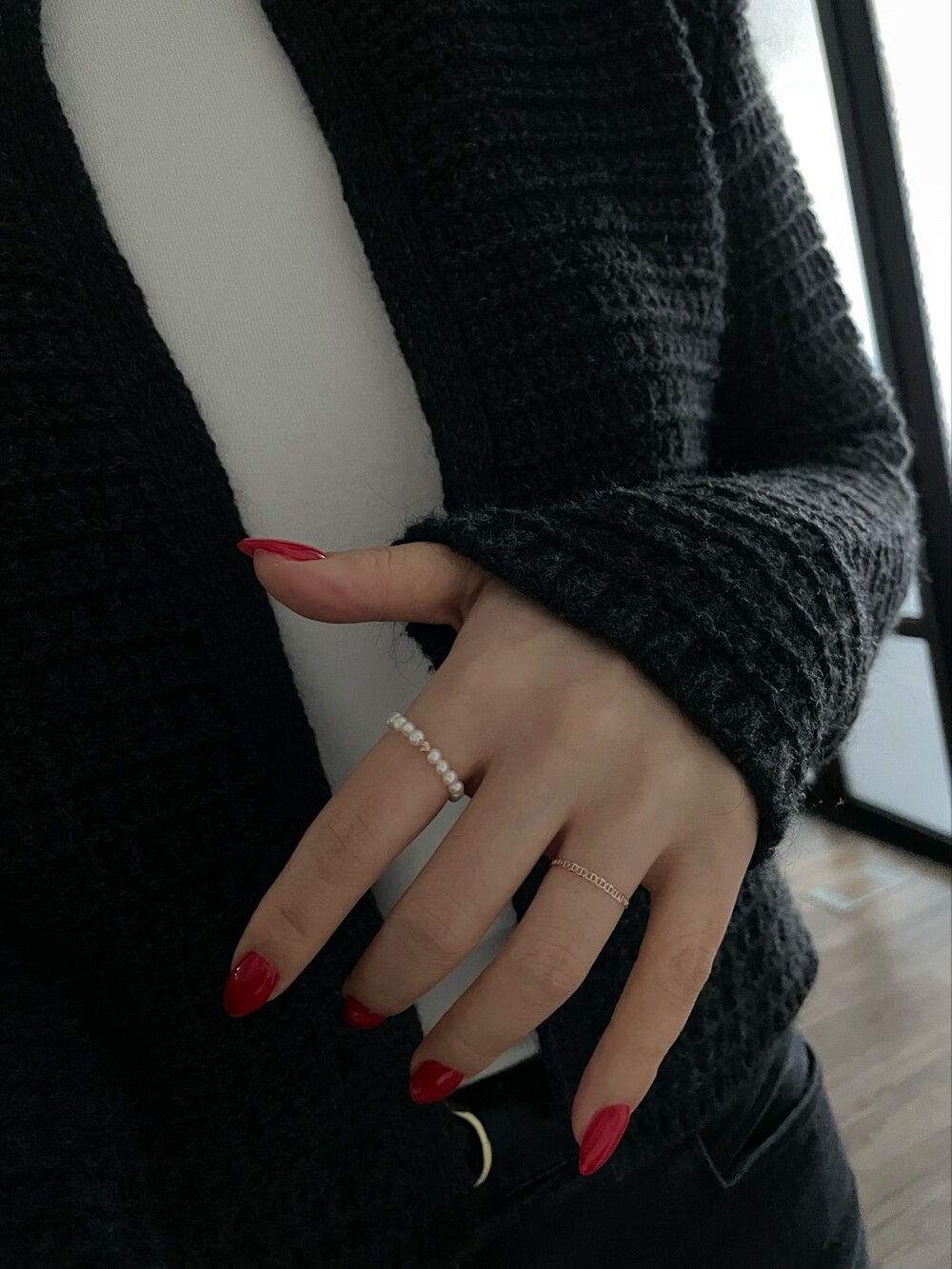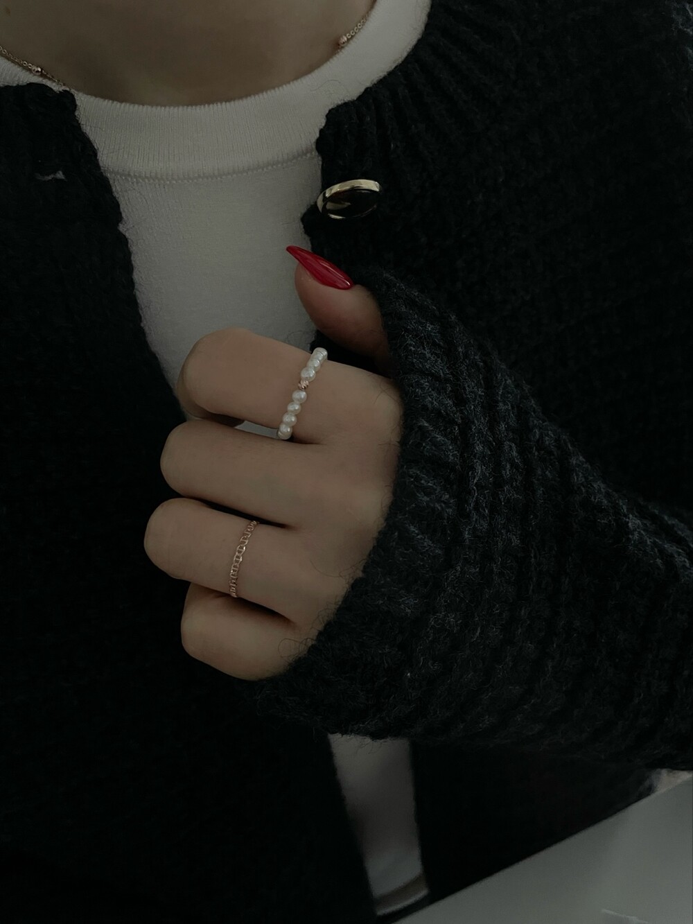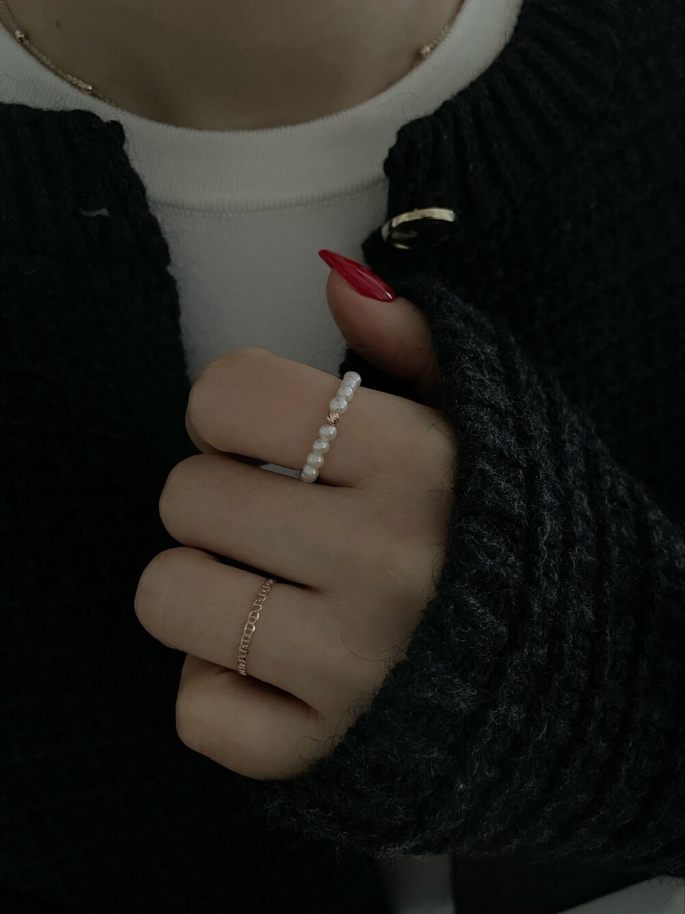 펄 앤 체인 반지 세트