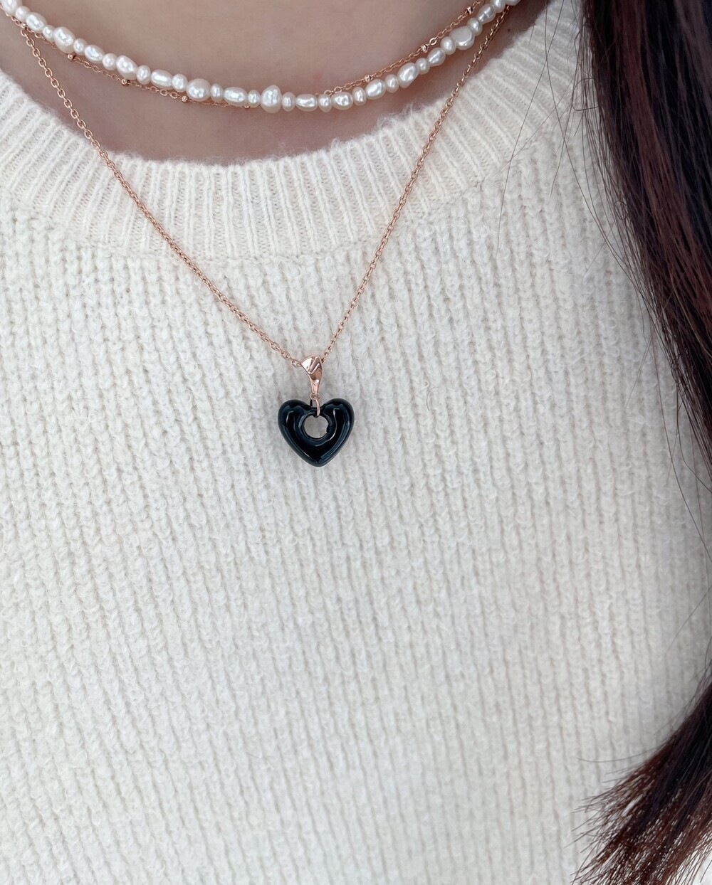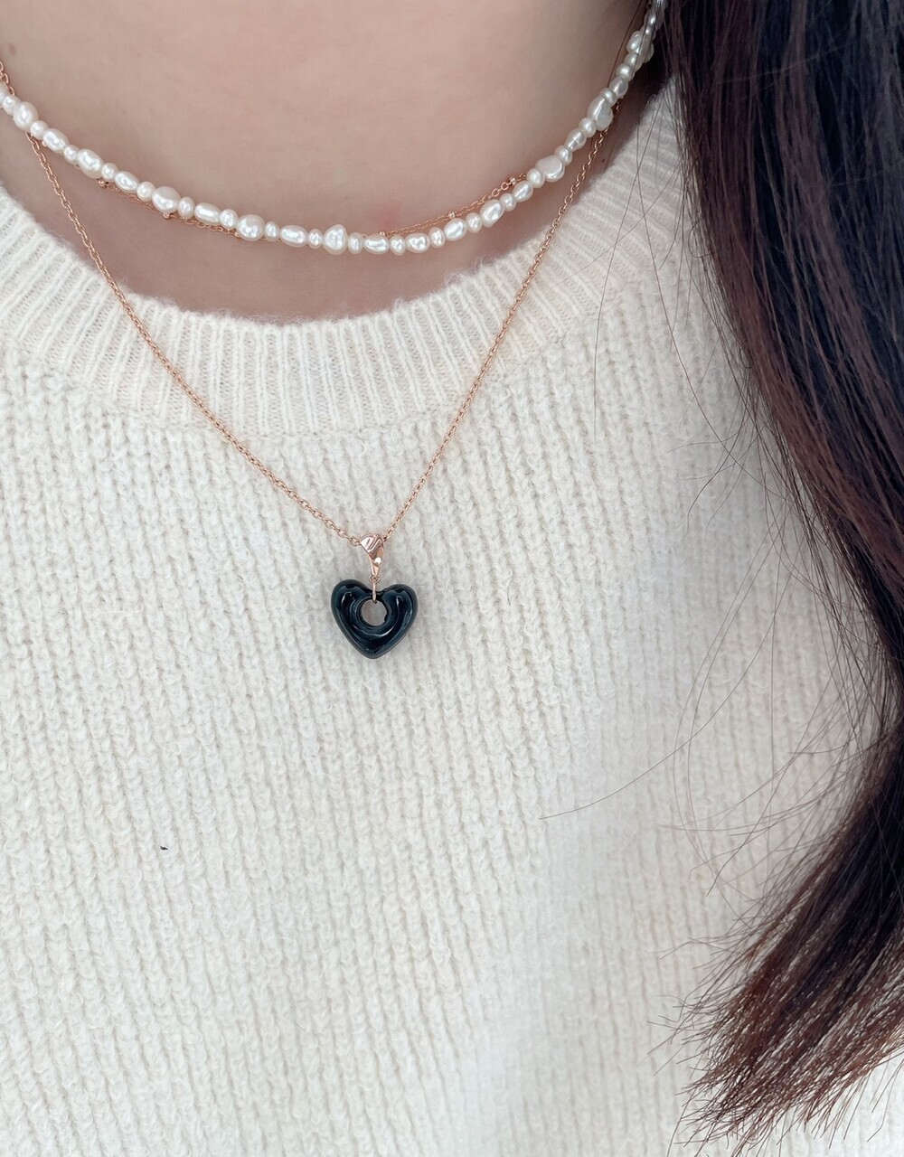 에크로 하트 펜던트(블랙 하트) 14k 핑크골드 단가 91000원 --> 81000원